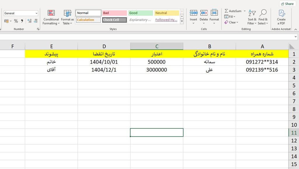 مرحله اول: آمادهسازی فایل اکسل