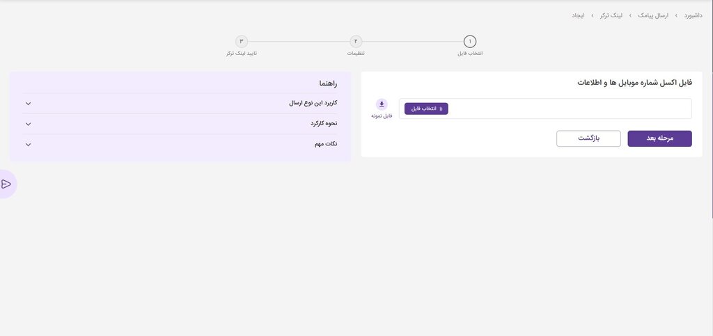 در بخش «ایجاد لینک ترکر» ابتدا باید فایل اکسل را در سیستم آپلود کنید.