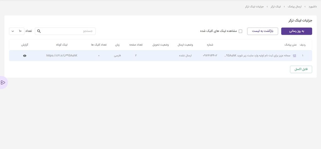 بعد از ارسال، بخش گزارشات لینک ترکر فعال میشود.