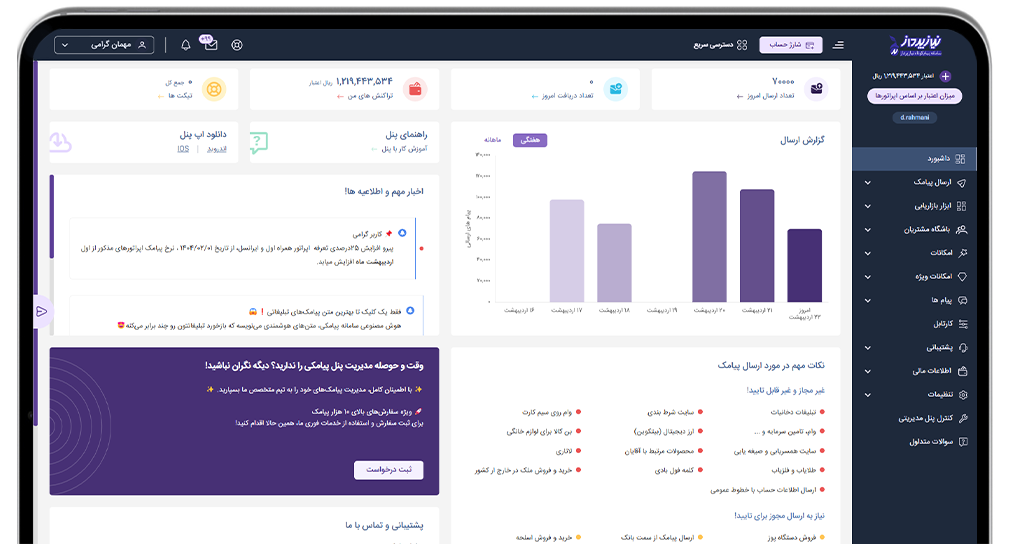 مشاهده جزئیات کامل پیامکهای ارسالشده